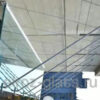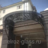 Стеклянный козырек с консольной металлоконструкцией – нуждается в установке прочной каркасной системы, которая способна выдержать не только вес самого козырька, но и осадки. Металлическая конструкция козырька является несущей, поэтому ее прочностные характеристики накладывают ограничения на толщину и размер используемого стекла. Здесь в роли дополнительного крепления могут быть применены ванты.